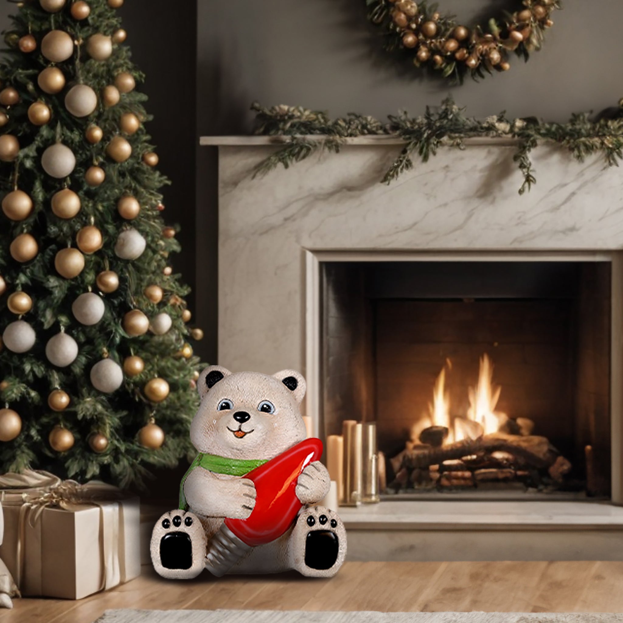 BABY POLAR BEAR HOLDING LIGHT BULB