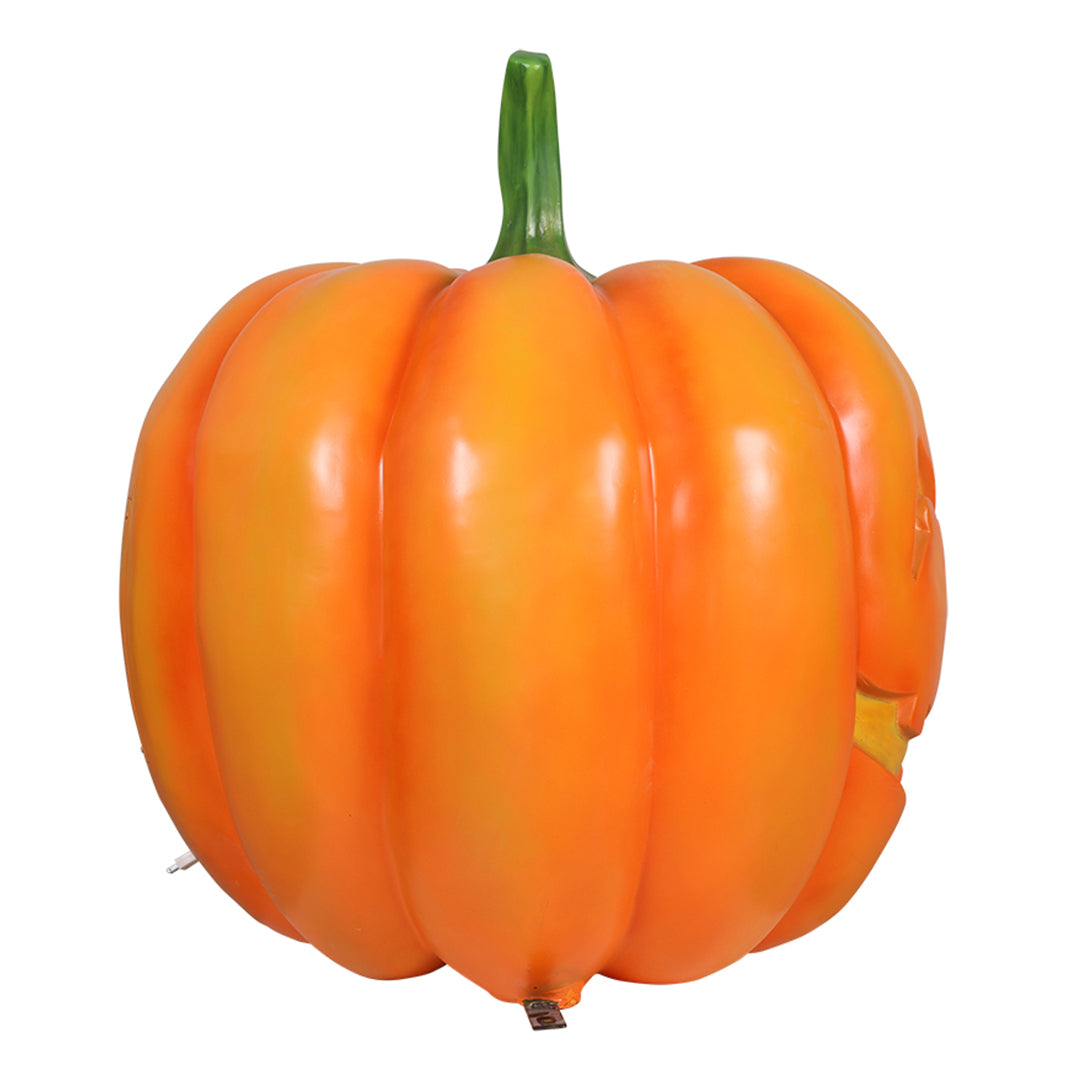 Create a spectacular Halloween display for your visitors with this 90 cm Pumpkin statue. It is sculpted and painted in the finest detail for a spooky look. This product is available in illuminated and non-illuminated variations. It is made of durable fiberglass resin that can withstand any weather, making it an ideal display for any indoor and outdoor environment.