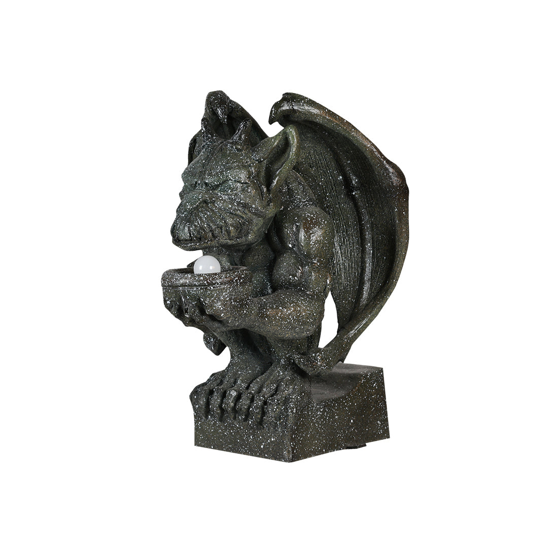 Create a spectacular Halloween display for your visitors with this illuminated gargoyle statue. This spooky decor is sculpted and painted in the finest detail for a realistic look. It is made of durable fiberglass resin that can withstand any weather, making it an ideal display for any indoor and outdoor environment.